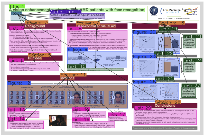 Our analyses based on SciPostGen show that paper structures are associated with the number of layout elements in their corresponding posters. In particular, the amount of text and the number of figures and tables in a paper are moderately related to the number of text and figure elements in the layout.