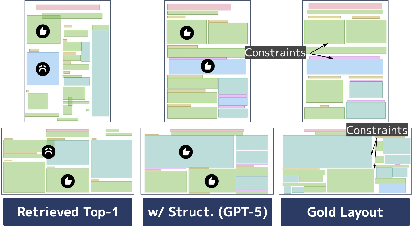 Building on our analyses, we explore a framework, Retrieval-Augmented Poster Layout Generation, which retrieves multiple layouts consistent with a given paper to accommodate the diversity observed in poster layouts. The layout retriever searches for layouts aligned with paper structures by learning relationships between papers and layouts through contrastive learning. Following recent work on layout generation, we employ a large language model as the layout generator to flexibly integrate diverse information, including retrieved results and paper structures.